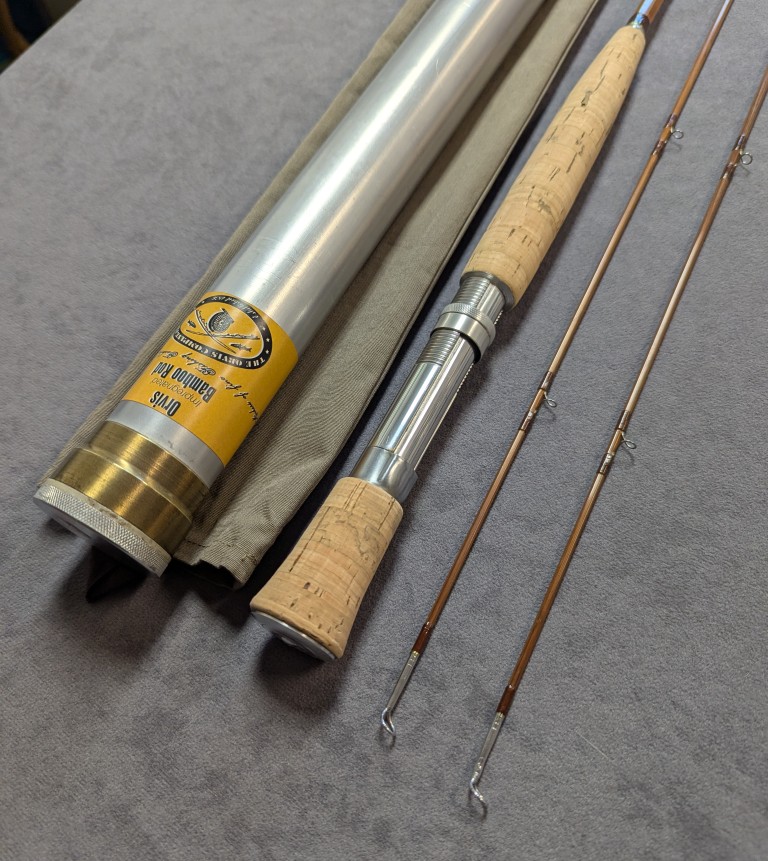 Orvis brown silks, cigar cork grip with down-locking bright anodized aluminum reel
