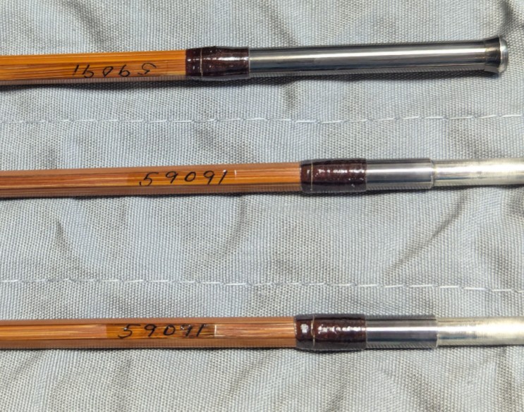 Nice dark impregnated bamboo. Blued nickel silver rod ferrules. Wrapped in dark brown silks,