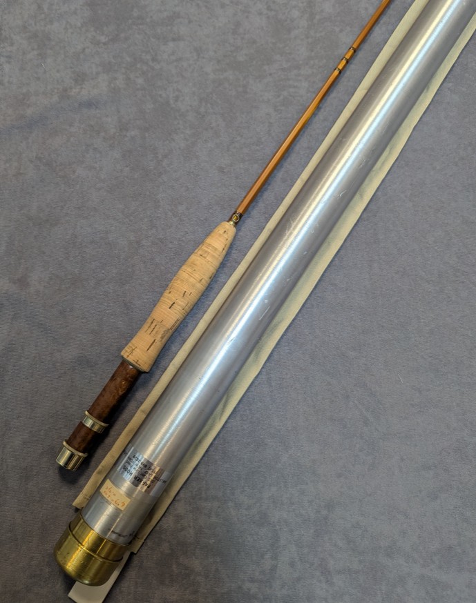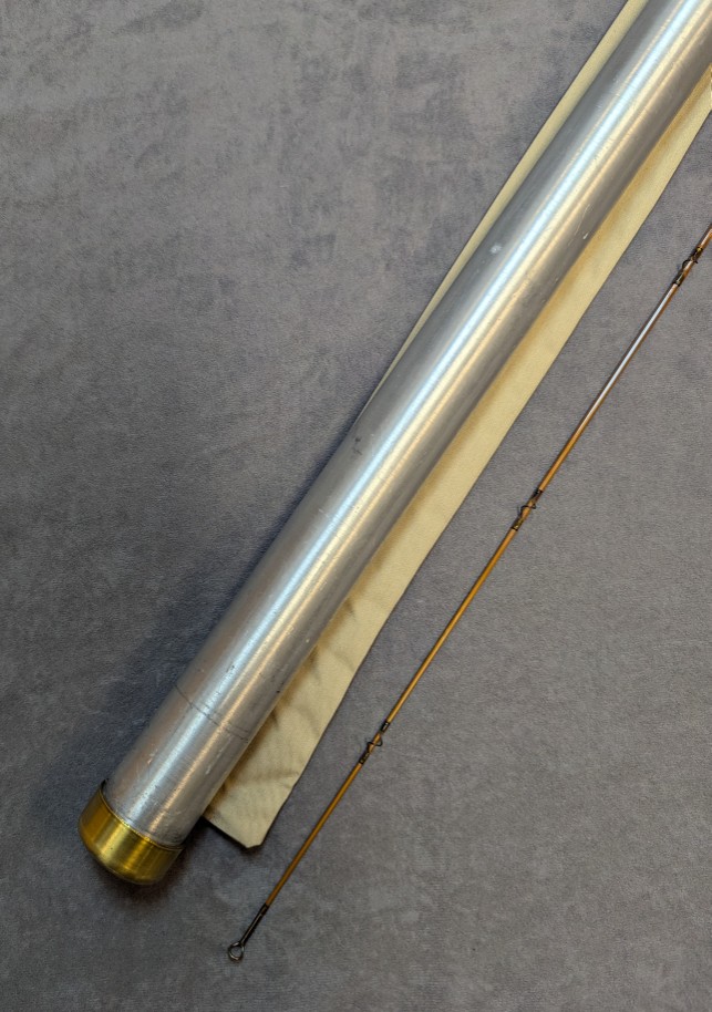 Rod comes packed in khaki labeled cloth rod bag and stored in aluminum labeled brass capped rod tube.