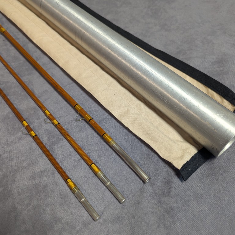 Fast dry fly action. Bright nickel silver rod ferrules. Wrapped in golden silks, tipped in black.