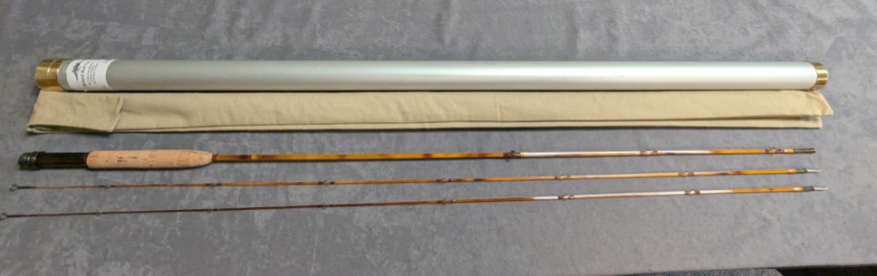 in khaki cloth rod bag and stored in aluminum labeled brass capped rod tube.