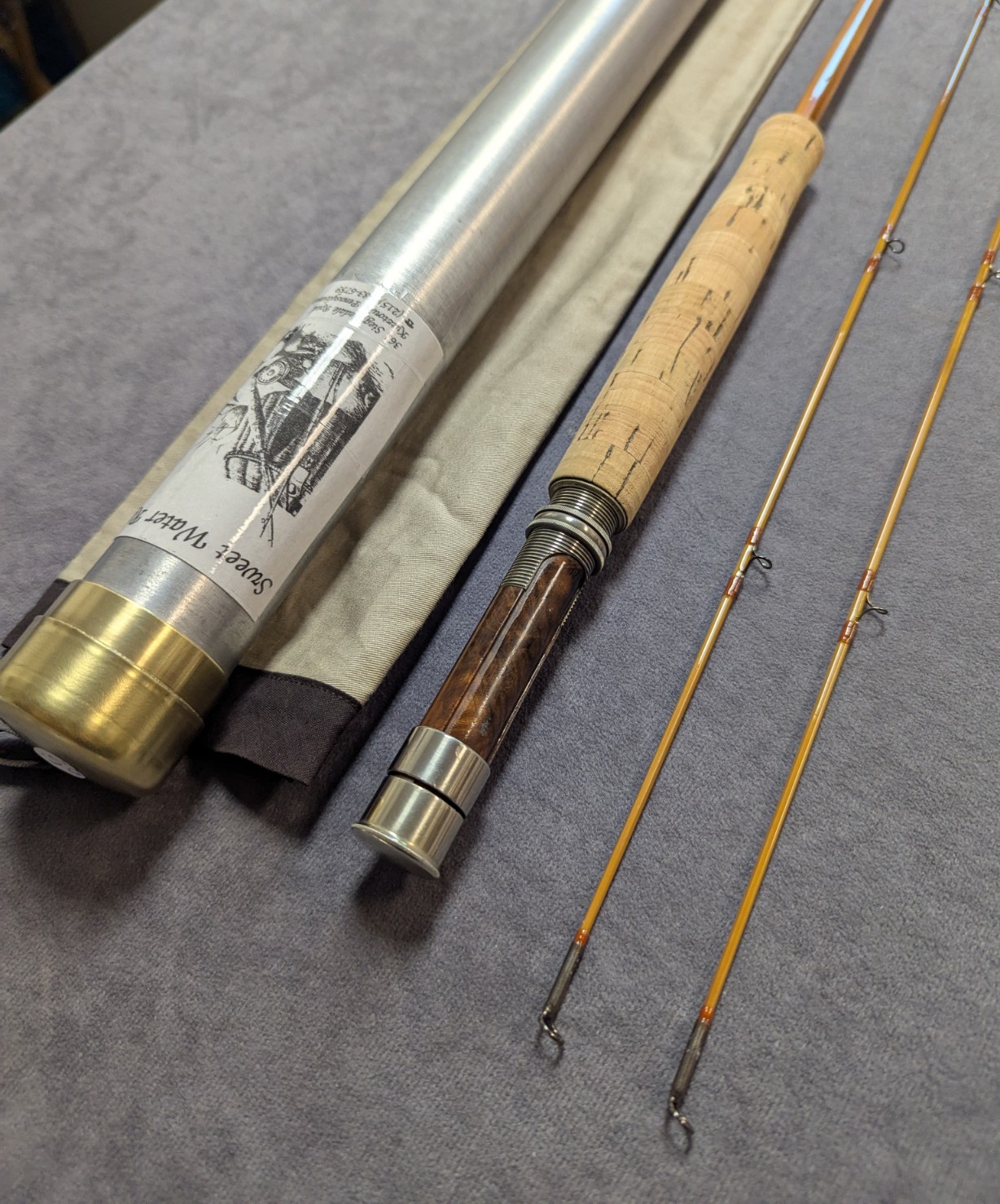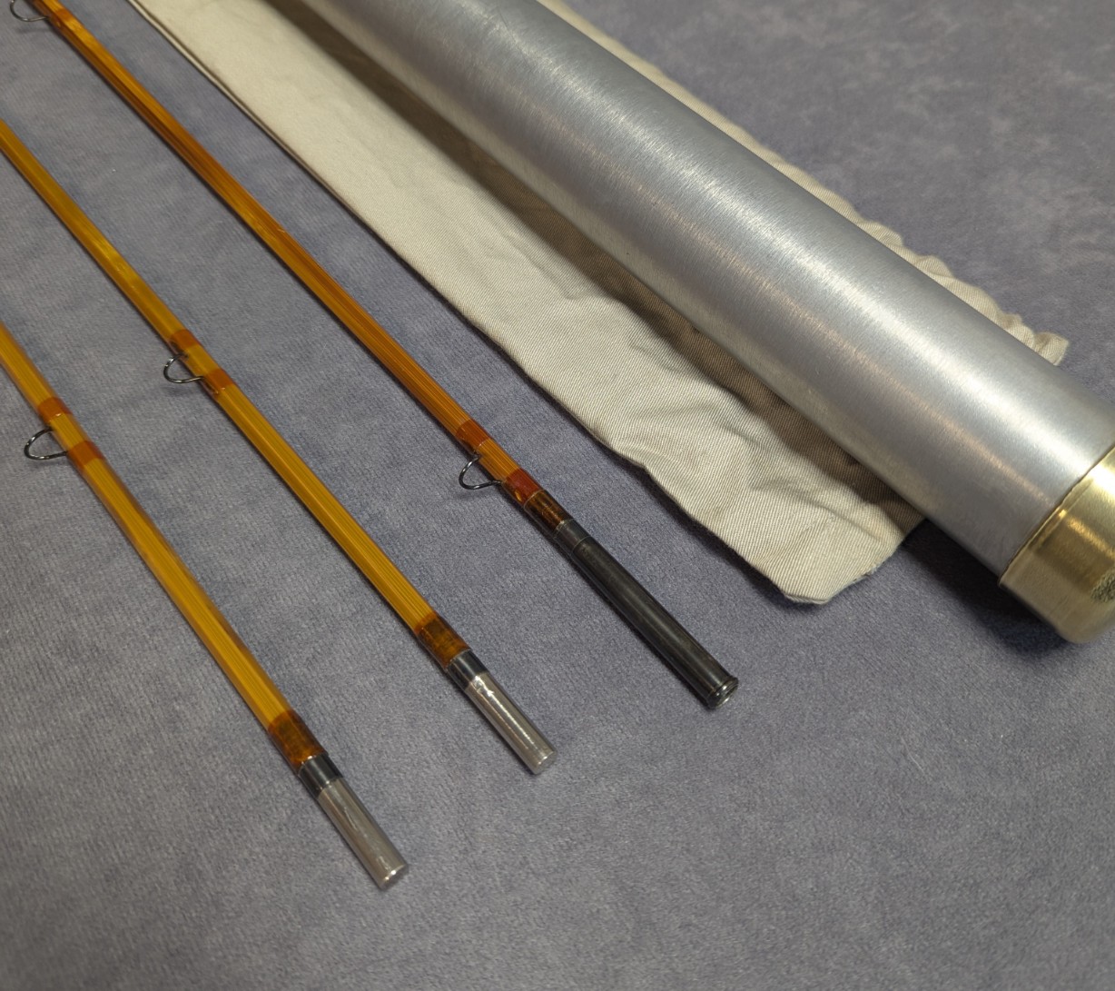 khaki cloth rod bag and stored in aluminum brass capped rod tube.