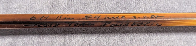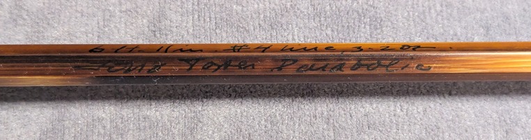 Blued nickel silver truncated ferrules. Wrapped in clear golden silks.