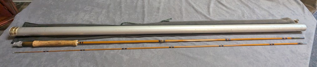 in original brown cloth rod bag and stored in aluminum rod tube. $400.
