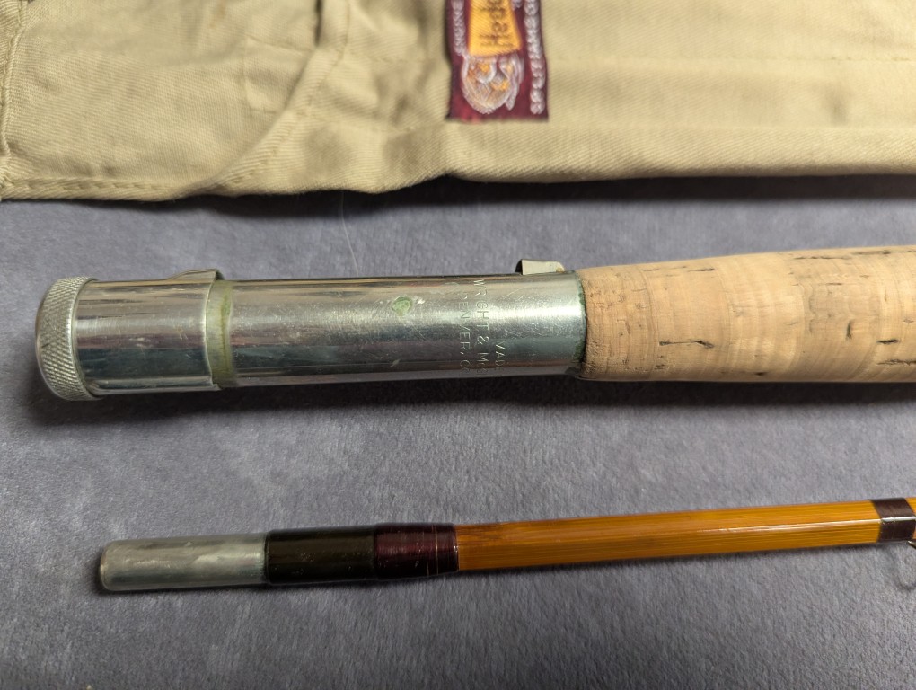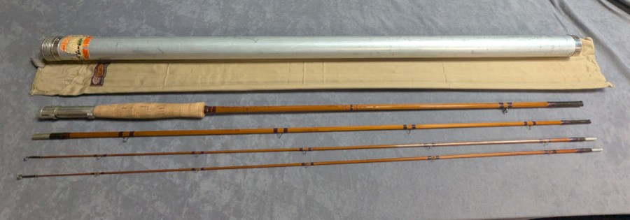 packed in original labeled khaki cloth rod bag and stored in original labeled factory rod tube.