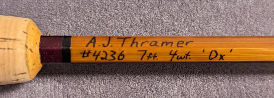 Medium fast dry fly action. Serial #4236. Very nice dark flamed cane.