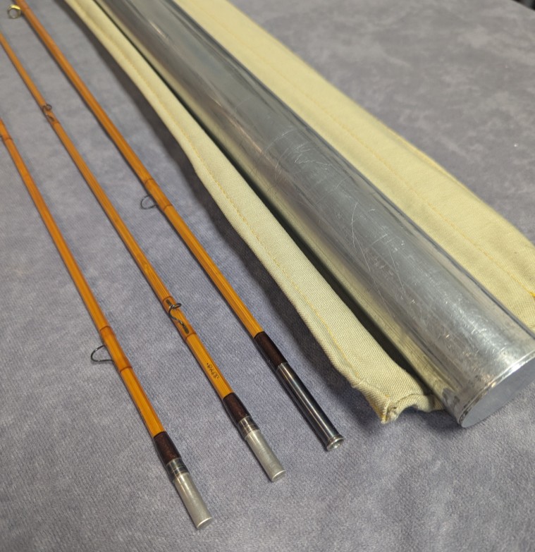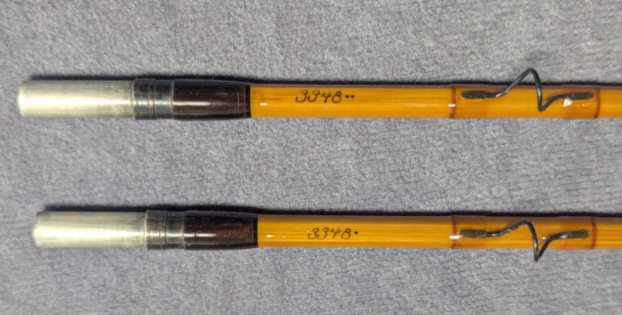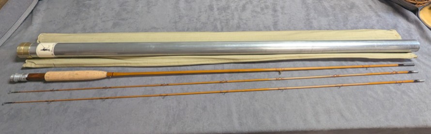 with Walnut wooden reel seat spacer. Serial #3348. Rod comes packed in khaki cloth rod bag and stored