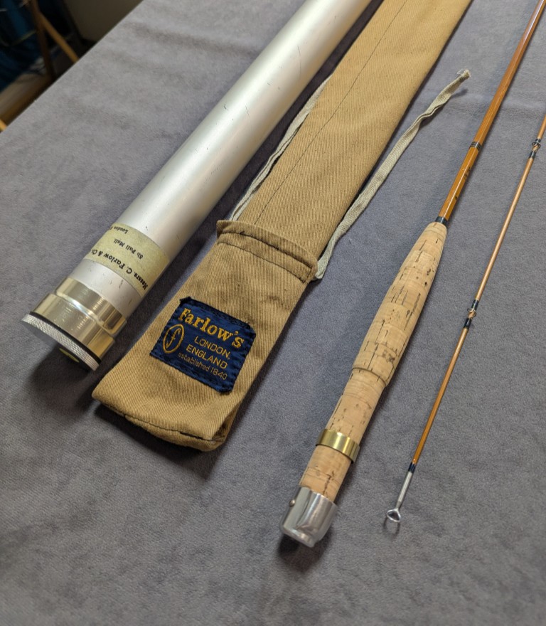 Comes packed in Farlow labeled cloth factory bag with hang tag. Stored in aluminum labeled factory rod tube. Very nice