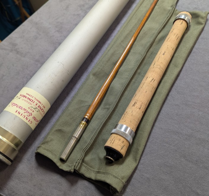 in green cloth rod bag and stored in aluminum labeled rod tube.