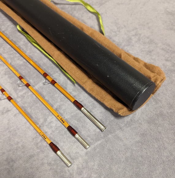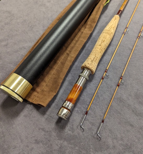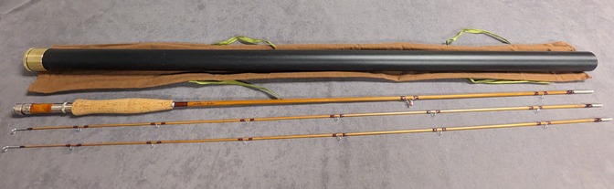 Medium fast action. Bright nickel silver rod ferrules. Wrapped in clesar brown silks, tipped in black.