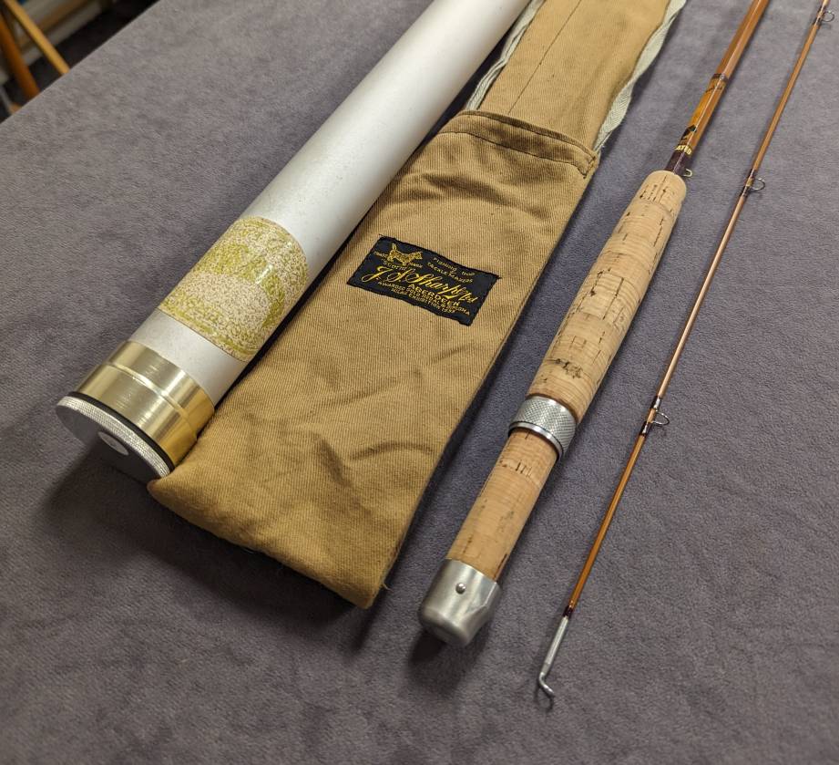 Fast dry fly action. Dark impregnated cane. Blued nickel silver rod ferrules.