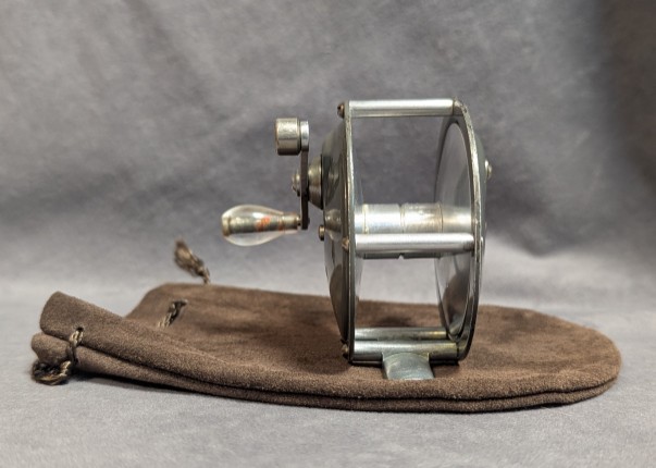 leather drawstring reel bag and is a scarce reel! In very good condition. $95.