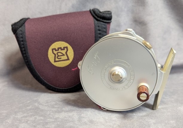 can be changed to LHW. Reel comes stored in burgundyneoprene factory reel pouch. Reel and line appear