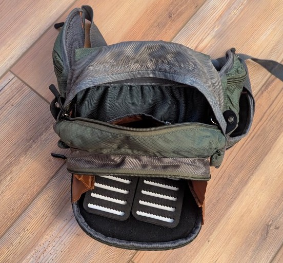 Adjustable back strap. 2 foam fly holders 2 1/2" x 4 1/4". $25.