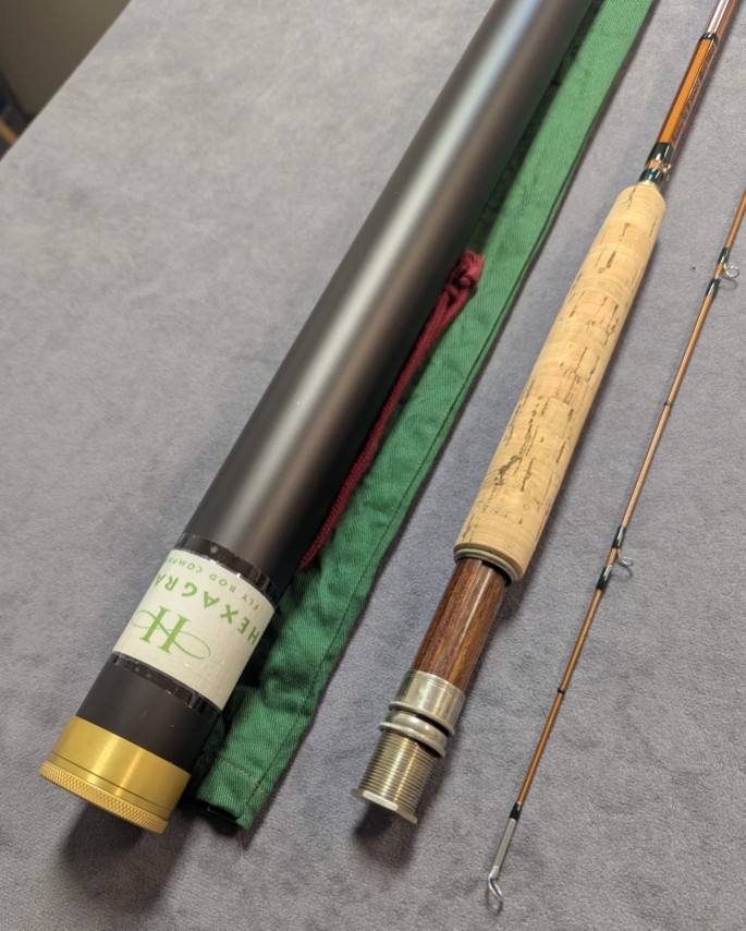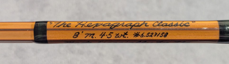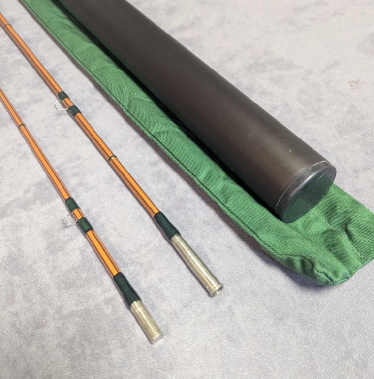 Serial #6523158. Fast dry fly action. Bright nickel silver rod ferrules. Wrapped in dark
