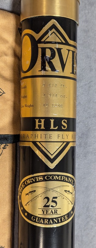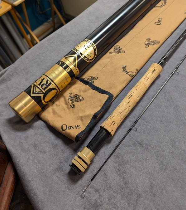 Rod comes packed in Orvis labeled cloth rod bag and stored in aluminum labeled brass
