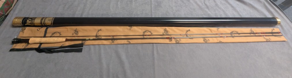 black factory labeled aluminum rod tube. Rod is in excellent condition. $195.