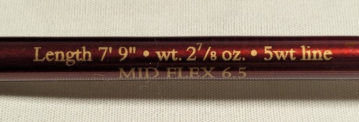 Fast dry fly action. 2 7/8 oz. Wrapped in dark burgandy threads, Ceramic stripper guide.
