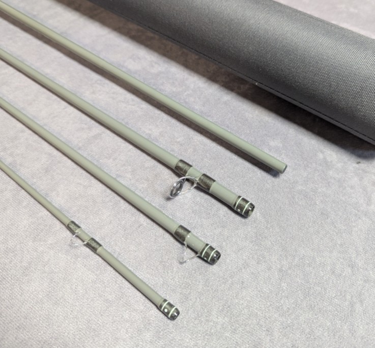 Fast action. Wrapped in gray threads, ceramic stripper guide. Full Wells cork grip with black