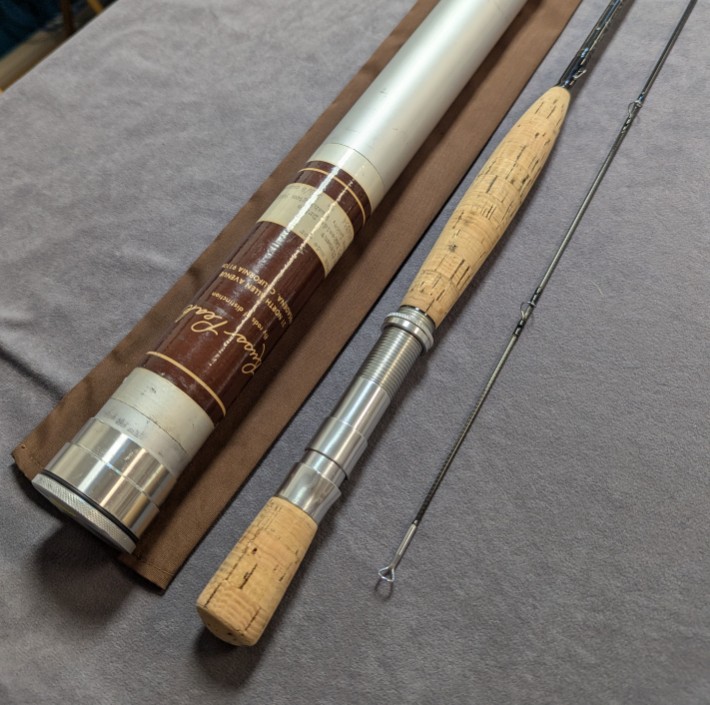 cloth rod bag and stored in aluminum labeled factory rod tube. Rod comes with original paperwork for owner.