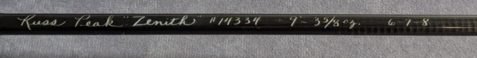 Takes 6-8 wt. lines. Fast dry fly action. 3 5/8 oz. Serial #14334. Wrapped in black threads,