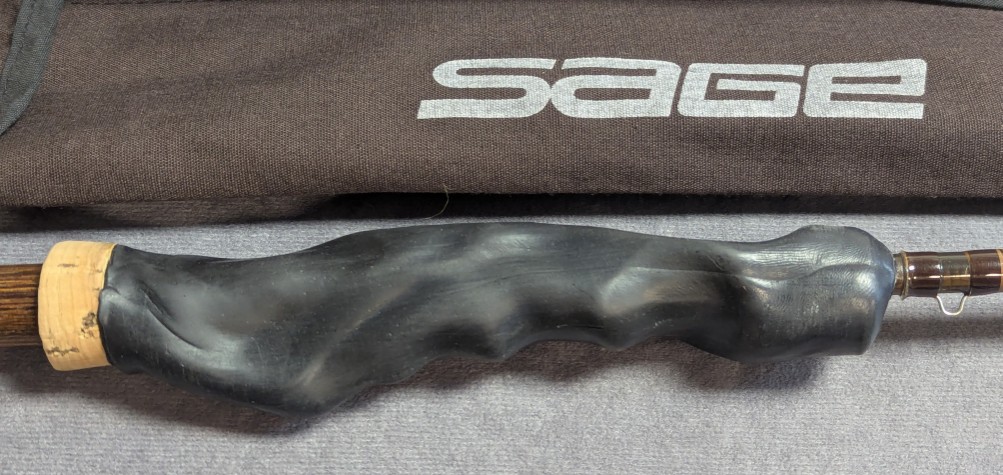 molded from his hand. The rod is wrapped in brown threads, ceramic stripper guide.
