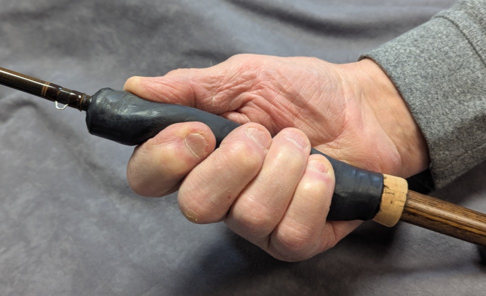 Lee designed this custom grip, made of black rubber