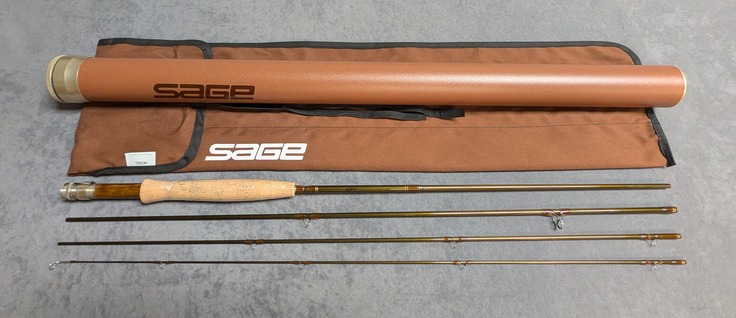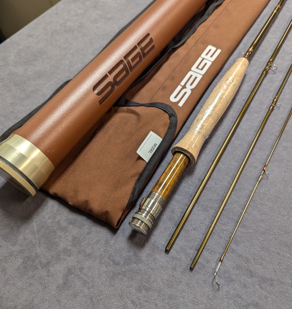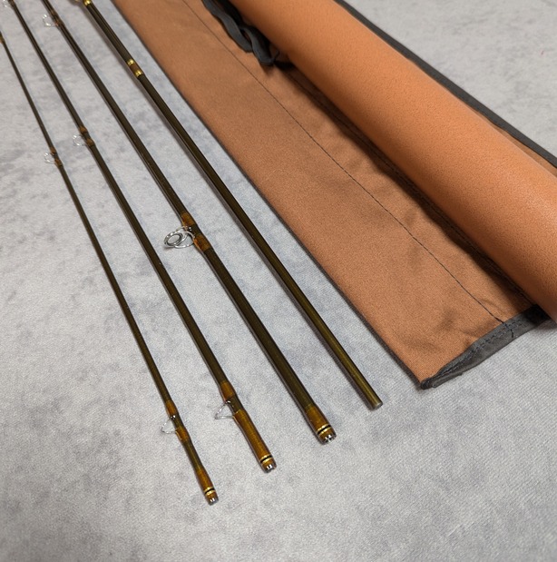 in brown labeled cloth rod bag and stored in brown aluminum labeled rod tube.