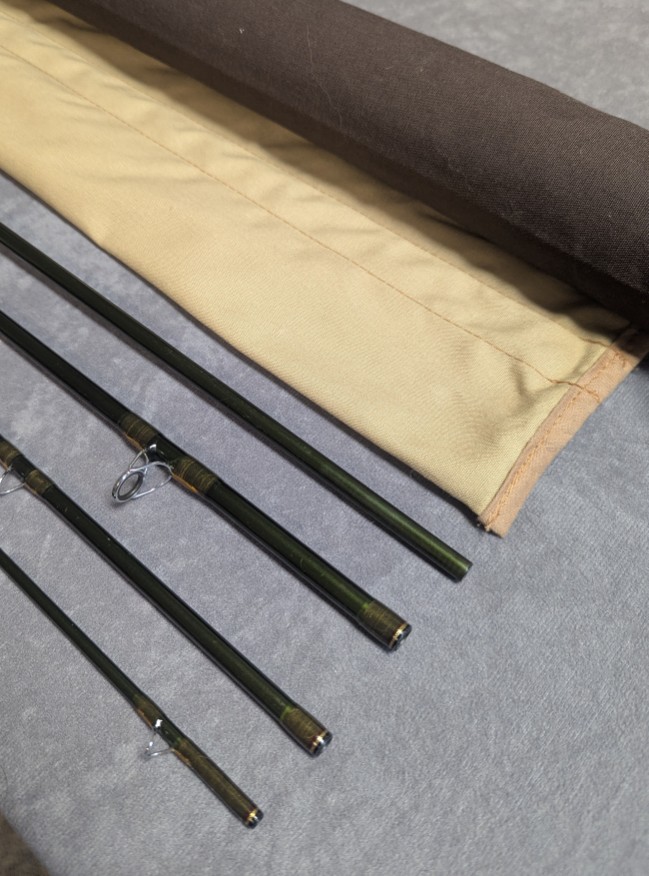 tan labeled factory cloth rod bag and stored in aluminum labeled factory rod tube.
