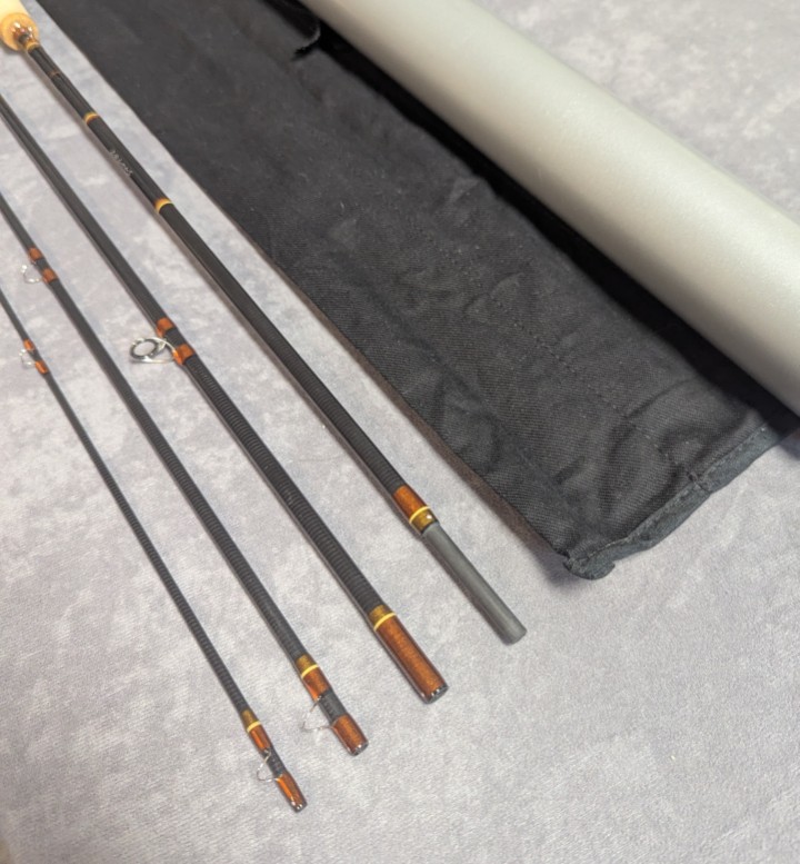 up-locking reel seat. Rod comes packed in black labeled factory cloth rod bag and stored