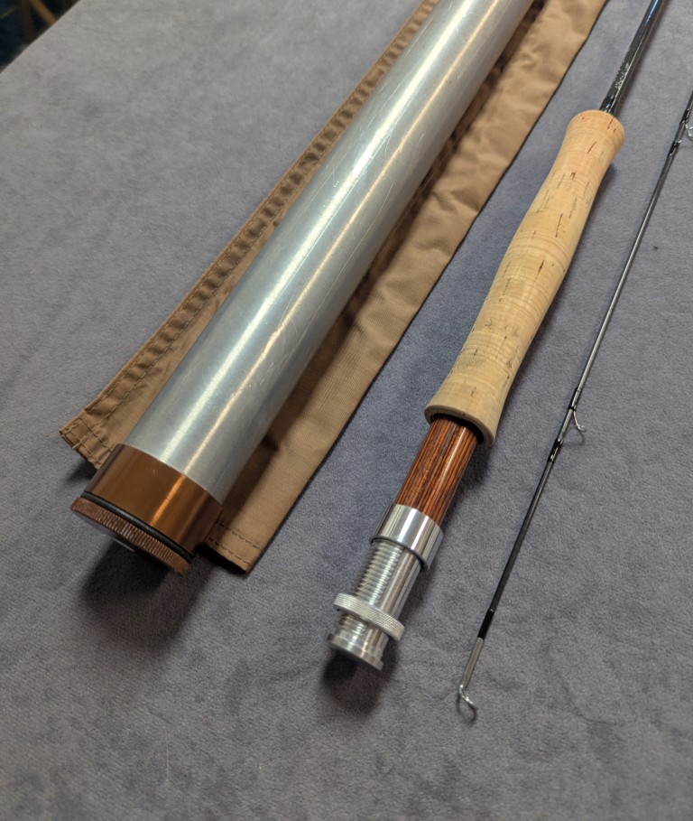 Fast action. Wrapped in black threads, ceramic stripper guides. Full Wells cork grip with