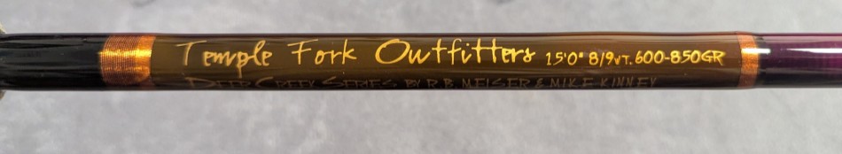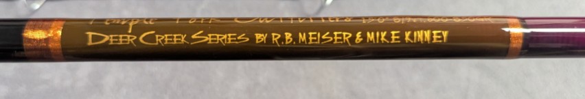 Designed by R. B. Meiser and Mike Kinney. Wrapped in brown threads, ceramic stripper guides. 26" cork