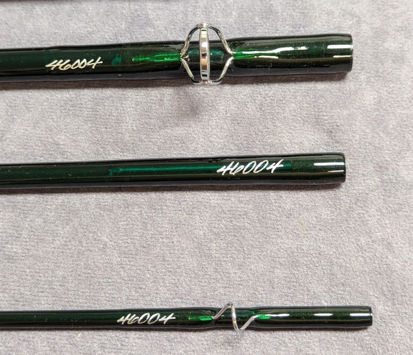 Wrapped in dark green threads, ceramic stripper guides.