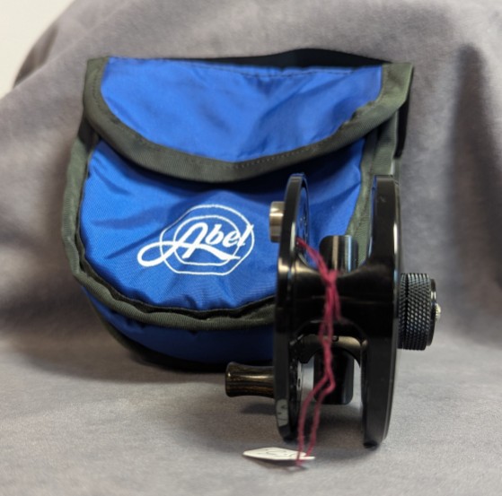 Black anodized reel finish. Serial #964. Wooden handle knob.