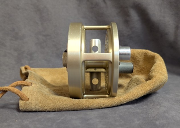 Reel comes packed in factory tan leather drawstring reel bag