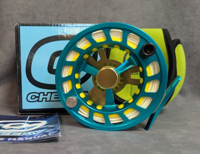 fly line and backing. Turquoise and gold anodized reel finish. Disc type drag