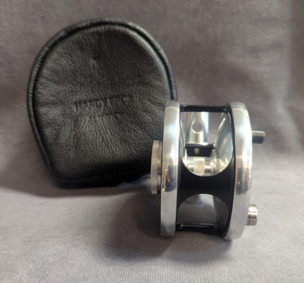 Serial #E00527. Black and silver anodized reel finish.