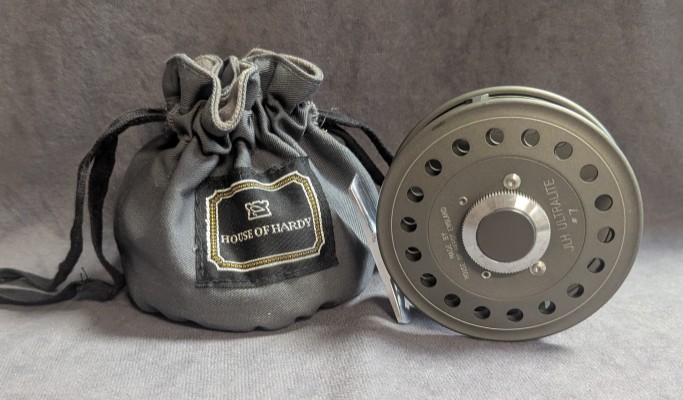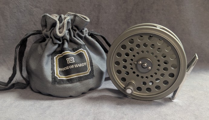 rear adjuster button. Reel comes stored in Hardy gray reel bag.