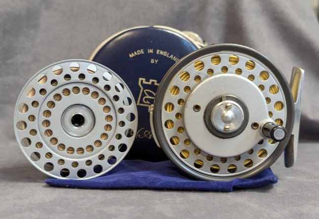 Gray and silver reel finish. 2-screw nickel silver line guide. Set for RHW, can be changed to LHW.