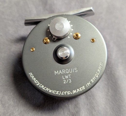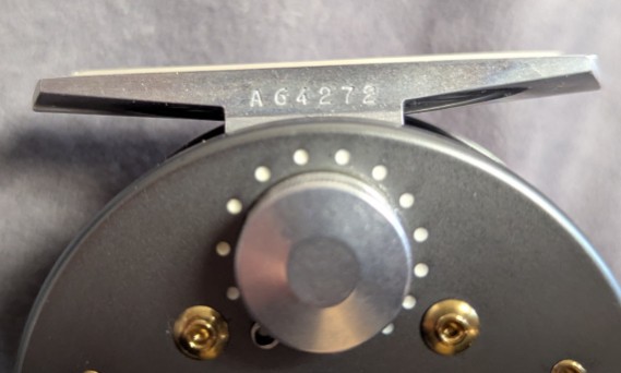 Takes 2-3 wt. lines. Serial #A64272. Gray and silver anodized reel finish.