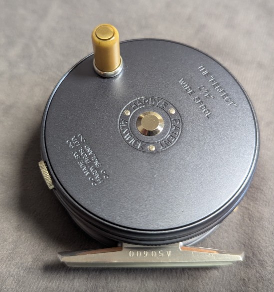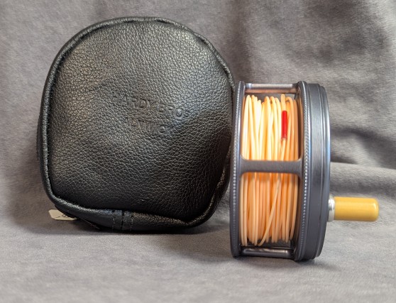 7/8" wide spool. Takes 4-6 wt. lines. Serial #A5600. Made in England.