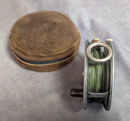 in brown suede zippered reel case and is in very good condition. $395.