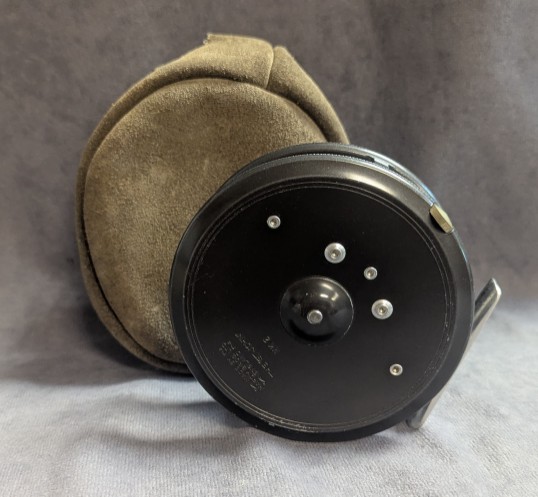 Takes 8-10 wt. lines plus backing. Enameled reel finish. Click and pawl type drag