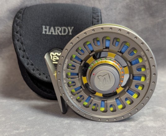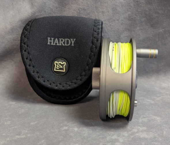 black Hardy marked neoprene reel case.