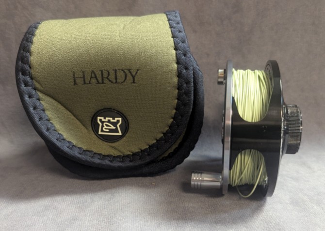 Black and silver anodized reel finish. Comes stored in green labeled factory neoprene reel pouch.