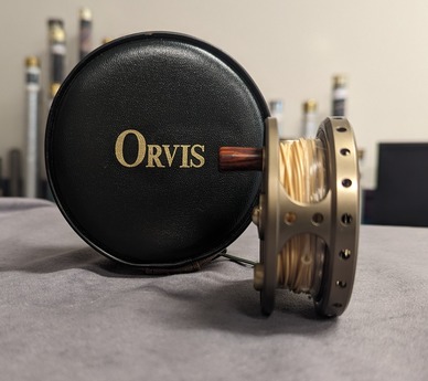 drag adjuster button. Reel comes packed in Orvis zippered factory reel case.