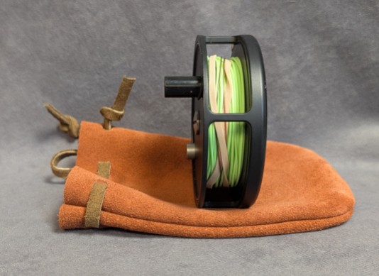 Takes 5-6 wt. lines. Serial #0802. Black anodized reel finish.