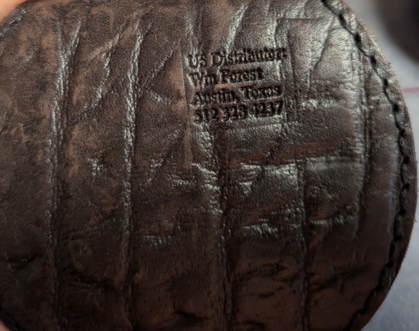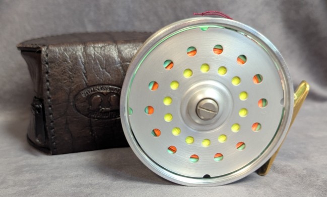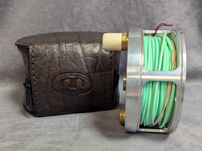 Essential leather block reel case. Reel appears in new, unused condition. $350.