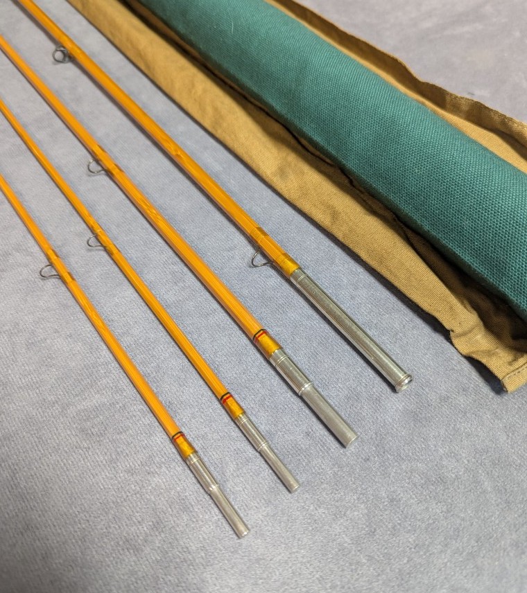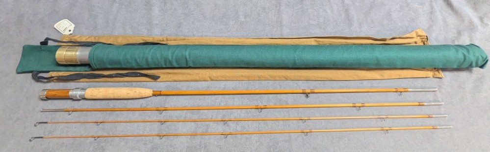 Rod comes packed in factory olive cloth rod bag with hang tag and stored in aluminum factory brass capped