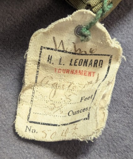 with Butternut wooden reel seat. Rod comes packed in original olive green cloth rod bag with hang tag and stored in